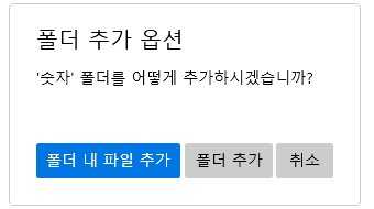 폴더 추가 버튼으로 폴더를 추가할떄 내부 파일을 추가할껀지, 폴더 자체를 추가할껀지 묻는 다이얼로그를 추가하고 기존엔 파일만 번호를 부여하는 기획을 수정해서 폴더 또한 파일과 동일하게 취급하는 방식으로 변경하였습니다.